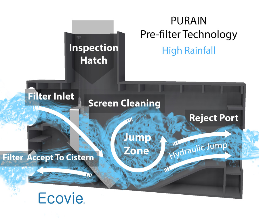 Hydraulic jump filters with self-cleaning technology for maximum rainwater capture.