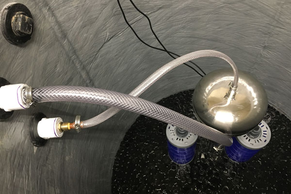 This Aqualoop system uses compact fiberglass basins for its twin tank arrangement of bioreactor and treated water holding tank with everything located in the client basement. The system has been up and running for over a year with great results.